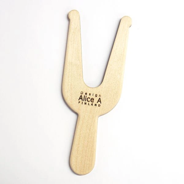 Alice A:n isompi nyörihaarukka soveltuu paksumpien materiaalien punontaan leveämmän työstövälin ansiosta. Nyörihaarukoilla punotaan neliskanttista nyöriä. Apuna silmukoiden nosteluun voi käyttää virkkuu- tai kudontakoukkua. Myös puinen neula on hyvä apu tarvittaessa.