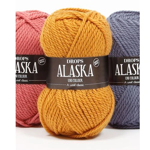 DROPS Alaska on 3-säikeinen lanka. DROPS Alaska löytyy monivärisenä, eli värit on karstattu yhteen ennen kehräystä, jolloin langasta tulee kirjava.