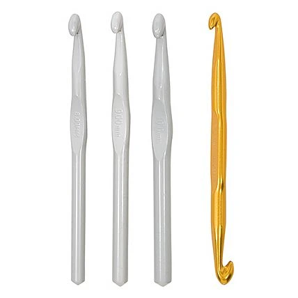 Nämä metalliset teflon-päällysteiset virkkuukoukut kestävät kovemmassakin käytössä eivätkä katkea! Isommat koukkukoot sopivat täydellisesti ontelokuteesta ja trikookuteesta virkkaamiseen eli mattojen, korien ja muiden isompien töiden virkkaukseen.