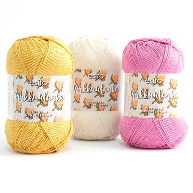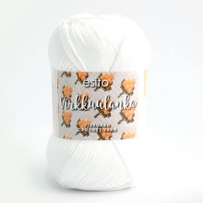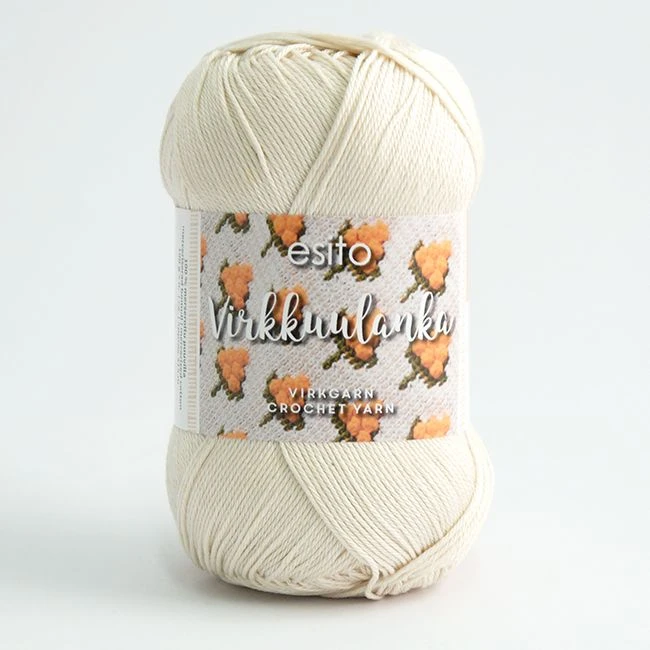 Esito-virkkuulanka on laadukas himmeäkiiltoinen lanka virkkaukseen, kudontatöihin ja kesäisiin neuleisiin. Kyseessä on rehellinen peruslanka, jonka käyttötarkoituksille on rajana vain mielikuvitus. Ohjeissamme tätä lankaa on käytetty mm. ripsiliinan loimena ja kuteena, virkatussa hellemekossa, asusteissa ja kalorittomissa koristeleivonnaisissa.