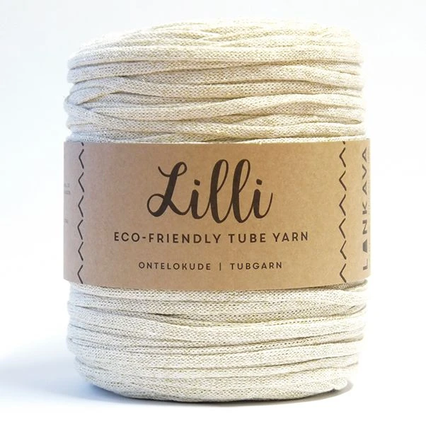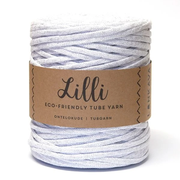Lilli-ontelokude kimalteella valmistetaan Eko-puuvillasta, jonka koostumus on 80% kierrätyspuuvilla, 20 % polyesteri. Kimalle-Lillin neulokseen lisätään kimallusta antava tehostelanka. Pakkasimme myös Kimalle-Lillin kätevälle ja somalle n. 1 kg:n rullalle, jolla kude on heti valmiina virkattavaksi, eikä inspiraation tarvitse odottaa.