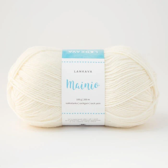 Lankava Mainio on sukkalanka puikoille 3-3,5 mm (100g/260m). Tämä keskivahva sukkalanka on mainio valinta koko perheen sukkiin ja asusteisiin. Tästä valmistuvat esimerkisksi kauniit kirjoneulekuviot sukanvarteen ja lapasiin, eikä lopputulos ole liian paksu.