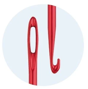 Prymin alumiinisessa koukkuneulassa on virkkuukoukku toisessa päässä ja iso neulansilmä toisessa päässä. Koukkuneulalla voit virkata neulotun näköistä pintaa. Knooking tekniikassa yhdistyy siten sekä virkkaaminen että neulominen. Koukkuneula on saatavilla kahdessa eri koossa: 4 mm (punainen) ja 6 mm (sininen). Koukkuneulan pituus on 16,5 cm.