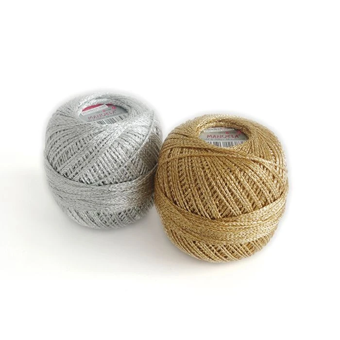 Schoeller Stahl Manuela -tehostelanka tuo kaunista ja juhlavaa metallinhohtoa käsityöihin. Lanka sopii neulontaan ja virkkaukseen, sekä käytettäväksi yhdessä muiden lankojen kanssa, kun työhön tarvitaan ripaus kullan tai hopean kimallusta.