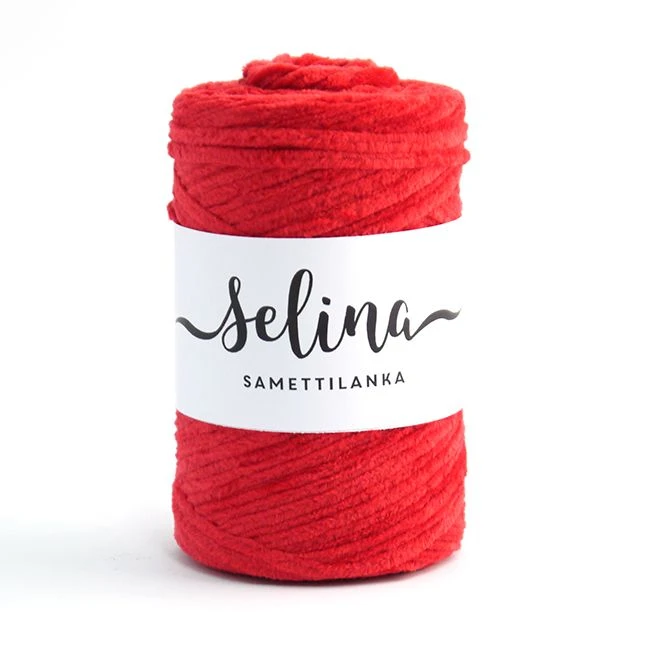 Selina-samettilanka on nyt saatavilla myös kätevillä 200 m pikkurullilla. Selina on pehmeä, nukkapintainen, paksuhko puuvillalanka (chenillelanka). Selina soveltuu kudonnaisiin, neulontaan ja virkkaukseen. Kudonnaisissa sitä käytetään usein poppanakuteen rinnalla. Virkaten teet siitä kauniin tyynynpäällisen.