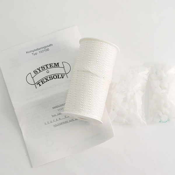 Sarjassa 1 rulla eli 50 m polyester-nyöriä sekä 50 kpl kulma- ja 50 kpl suorasokkia.