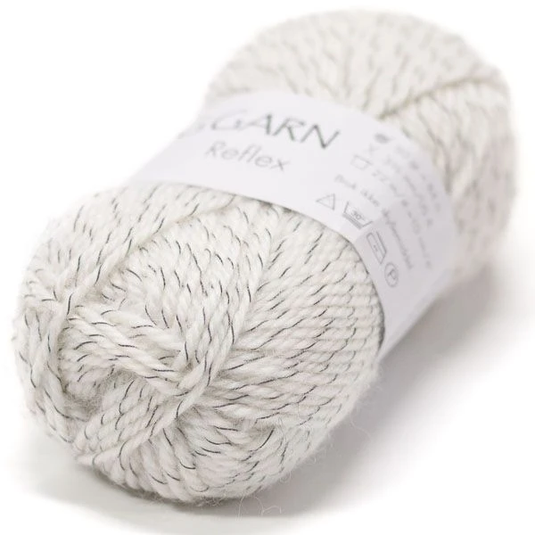 Reflex on pehmeä heijastava lanka, jossa on puolet villaa, joten se myös lämmittää mukavasti. Langassa kulkee mukana heijastava säie, joka tuo pimeällä lisänäkyvyyttä. Nyt voit siis kätevästi neuloa heijastavasta langasta pipot, huivit ja lapaset, jotka näkyvät! Käytäthän kuitenkin lisäksi oikeita heijastimia. Heijastinlangasta neulottu asuste ei korvaa niitä.